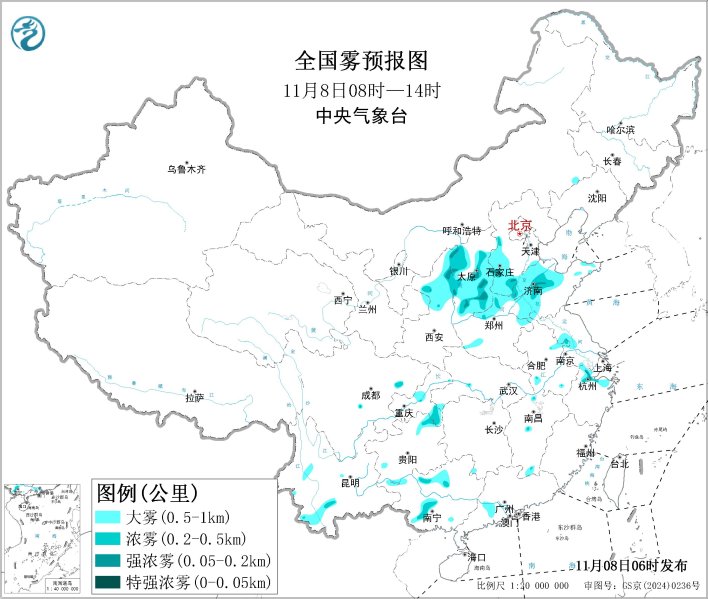 金橘策略 中央气象台11月8日06时继续发布大雾黄色预警